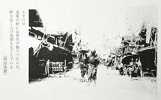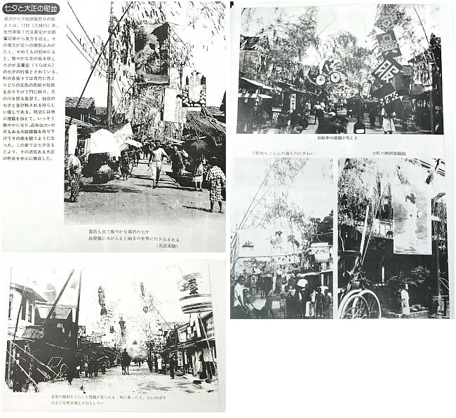 明治末期の資料写真では、見る限り絵灯ろうはありませんが、青竹に装飾をしていることが分かります。