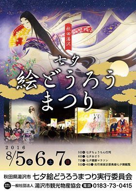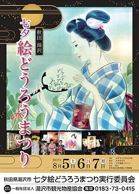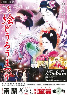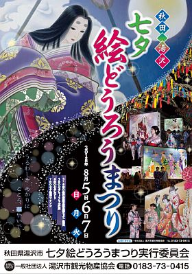 湯沢の「七夕絵どうろうまつり」は、秋田藩佐竹南家七代目義安公に、京都の公卿鷹司家から「おこし入れ」された姫君が、京都への郷愁やるかたなき想いを五色の短冊に託し、青竹に飾りつけたのが始まりといわれています。