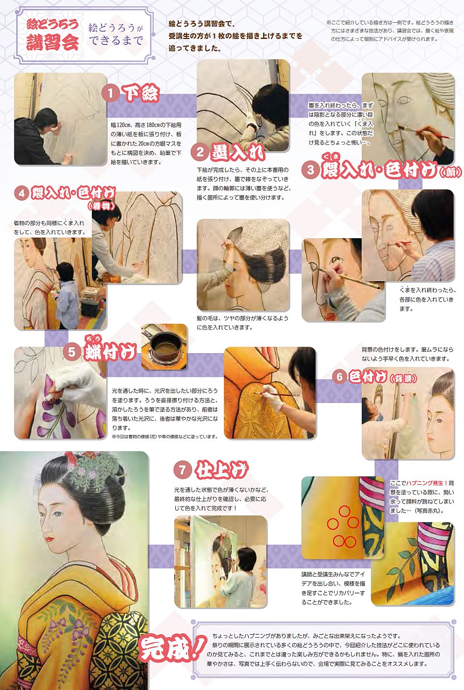 この内容は、2019年の5月に行われた絵どうろう講習会を1か月取材した内容となっています。